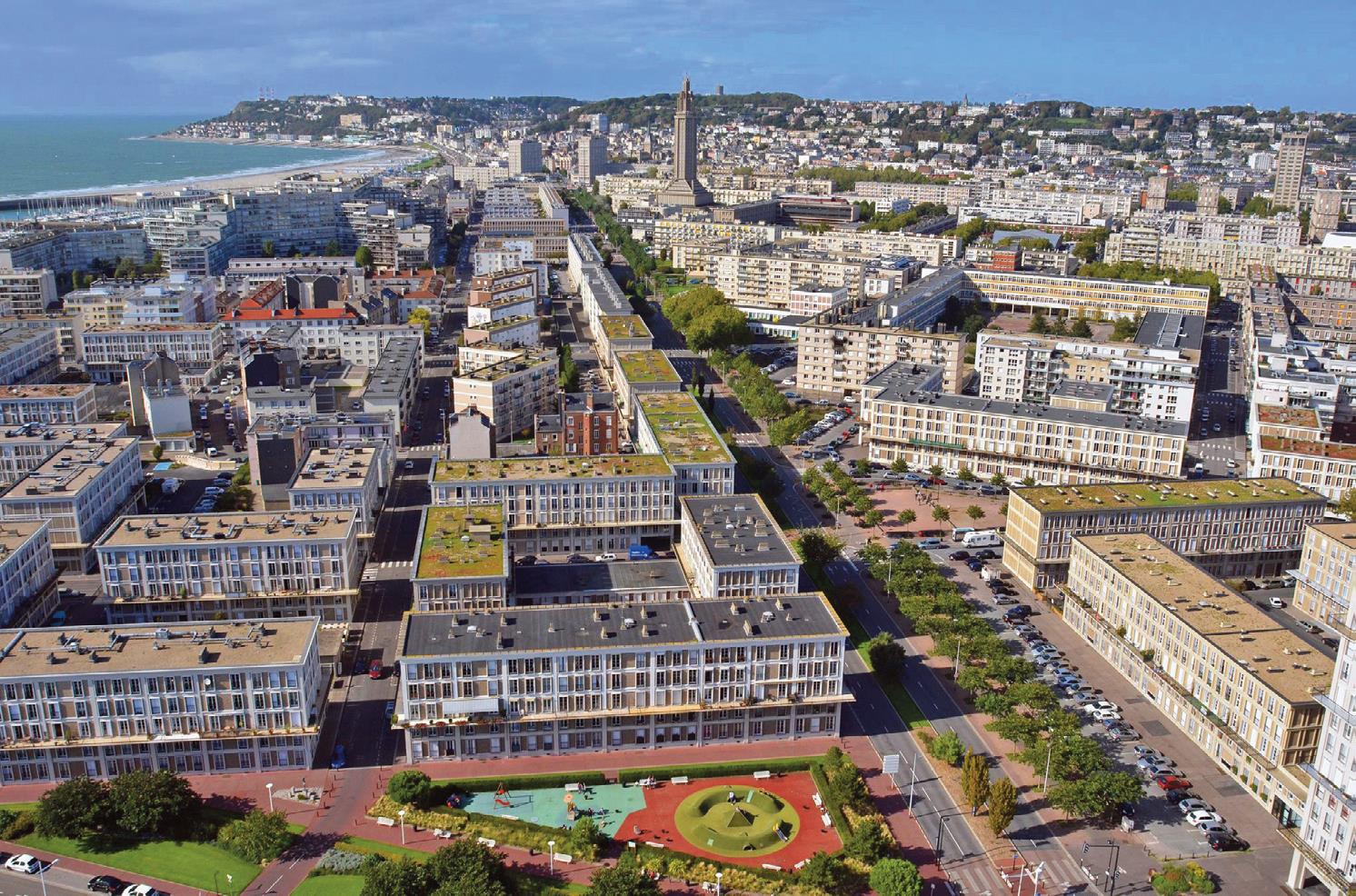 1944 ildә ABŞ–Britaniya aviasiyasının bombardmanı nәticәsindә güclü dağıntılara mәruz qalmışdır. Köhnә şәhәrin tikililәrindәn Notr-Dam (1574–1638, memar N.Düşmen; zәng qüllәsi portalının bir hissәsi – 1536), Sen-Fransua (16–17 әsrlәr) kilsәlәri; Hotel (1676 – 1727) saxlanılmışdır. Müasir H.-ın hüdudlarında Qravil-Sent-Onorin abbatlığı (11–14 әsrlәr kilsәsi; hazırda orta әsrlәr heykәltәraşlığı vә arxeologiya muzeyi, 1926 ildә yaradılmışdır), İnquvildә Sen-Mişel kilsәsi (15 әsrin sonu), köhnә Turnevil vә Sent-Andres istehkamları qalır. 1947–56 illәrdә O.Perrenin layihәsi әsasında şәhәr, demәk olar ki, yeni memarlıq dominantları [Ratuşa binası (1952–58, memarlar Perre, J.Turnan), “Okean qapıları” ansamblı (1949–56, memarlar J. Puarye, A. Erman), “Cәnub dәniz fasadı”nın binaları (1952–56), Sen-Jozef kilsәsi (1949–56, memarlar O.Perre, R.Odijye; hünd. 106 m olan zәng qüllәsindә mayak)] ilә tamamilә yenidәn tikilmişdir. Şәhәrin digәr görmәli yerlәri: “Vulkan” kompleksi (1982, memar O. Nimeyer; burada Milli mәdәniyyәt mәrkәzi yerlәşir), Normandiya körpüsü (1988– 94; 1995 ildә açılışı olmuşdur). H.-ın mәrkәzi hissәsindәki tikililәr müharibәdәn - sonrakı memarlıq vә şәhәrsalma abidәsi kimi Ümumdünya irsi siyahısına daxil edilmişdir (2005). Roman kilsәsi (1052–67) ilә birlikdә Jümyej abbatlığının xarabalıqları, Tankarvil qәsri (әsası 11 әsrdә qoyulmuşdur), qotik üslubda Müq. Üçüqnum bazilikası (1168–1219) vә Fekandakı benediktçi abbatlığının Renessans dövrünә aid sarayı H. yaxınlığında yerlәşir. Gәmiqayırma, neft emalı, kimya, sement, әlvan metallurgiya, yeyinti vә pambıq parça sәnayesi inkişaf etmişdir. Şәhәrin port funksiyaları (yük dövriyyәsinin 4/5-ünü neft tәşkil edir) sәnayenin ixtisaslaşmasını müәyyәn edir. Neft-emalı, neft kimya (“Total”, “Exxon”, “Shell”), gәmiqayırma (“Ateliers et chantiers”, avtomobil (“Renault Sandouville”) vә aviasiya (“EADS Revima”, “Aircelle”) sәnayesi inkişaf etmişdir; sement (“Lafarge”) istehsal edilir. Sәnayenin әn mühüm sektoru neft-kimya sahәsidir: kimya sәnayesinin әn iri müәssisәlәri kommunalarda (Montivilliersda –“Total S.A.”, “Yara”, “Chevron Oronite SA”, “Lanxess”; Sandovildә – “Goodyear Chemicals Europe”) yerlәşir. H. Marseldәn sonra Fransanın ikinci әn iri portudur (tәqr. 16 min nәfәr çalışır); yük dövriyyәsi ildә tәqr. 50 mln. t tәşkil edir. H. portu Fransanın ümumi konteryner daşımalarının 60%-ini hәyata keçirir (2,2 mln. İFE; 2011). Avropada konteyner daşımalarının hәcminә görә 8-ci, ümumi daşımaların hәcminә görә isә 6-cı yerdәdir. Xidmәt sferası, әsasәn, port әmәliyyatları ilә (gәmi sahib karlığı, dәniz sığortası) әlaqәlidir. “Groupama Transport”, “Delmas” (nәql. vә rabitә) vә “SPB” (sığorta şirkәti; 500 nәfәr çalışır) şirkәtlәrinin baş ofislәri burada yerlәşir.