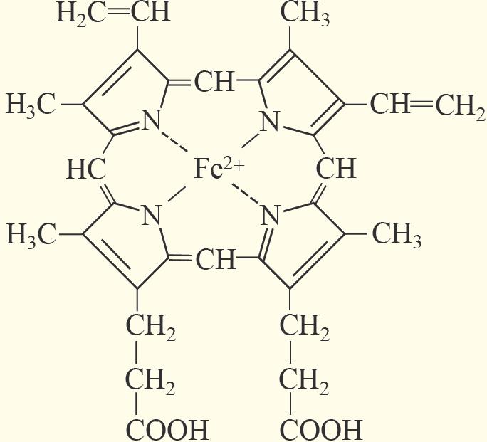dönәn dәyişikliyi hesabına oksidlәşmәreduksiya reaksiyalarında iştirak etmәklә elektronların keçiricisi rolunda çıxış edir. H. hemoqlobinin vә mioqlobinin tәrkibindә oksigen daşınmasını hәyata keçirir. Hәmçinin bir sıra fermentlәrin, mәs., katalazanın vә peroksidazanın tәrkibindә olur.