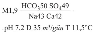 Suyu zәif minerallaşmış, hidrokarbonatlı-sulfatlı, natriumlu-kalsiumludur. Yerli әhali tәrәfindәn müalicә mәqsәdilә istifadә edilir.