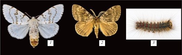 Hәlqәvi ipәksarıyan (Ocneria dispar): 1 – dişi; 2 – erkәk; 3 – yetkin tırtıl.