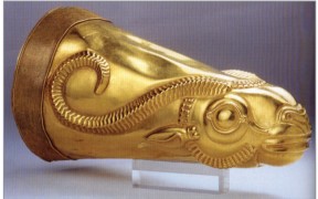 Əhәmәnilәr dövrünә aid öküzbaşlı qızıl riton.